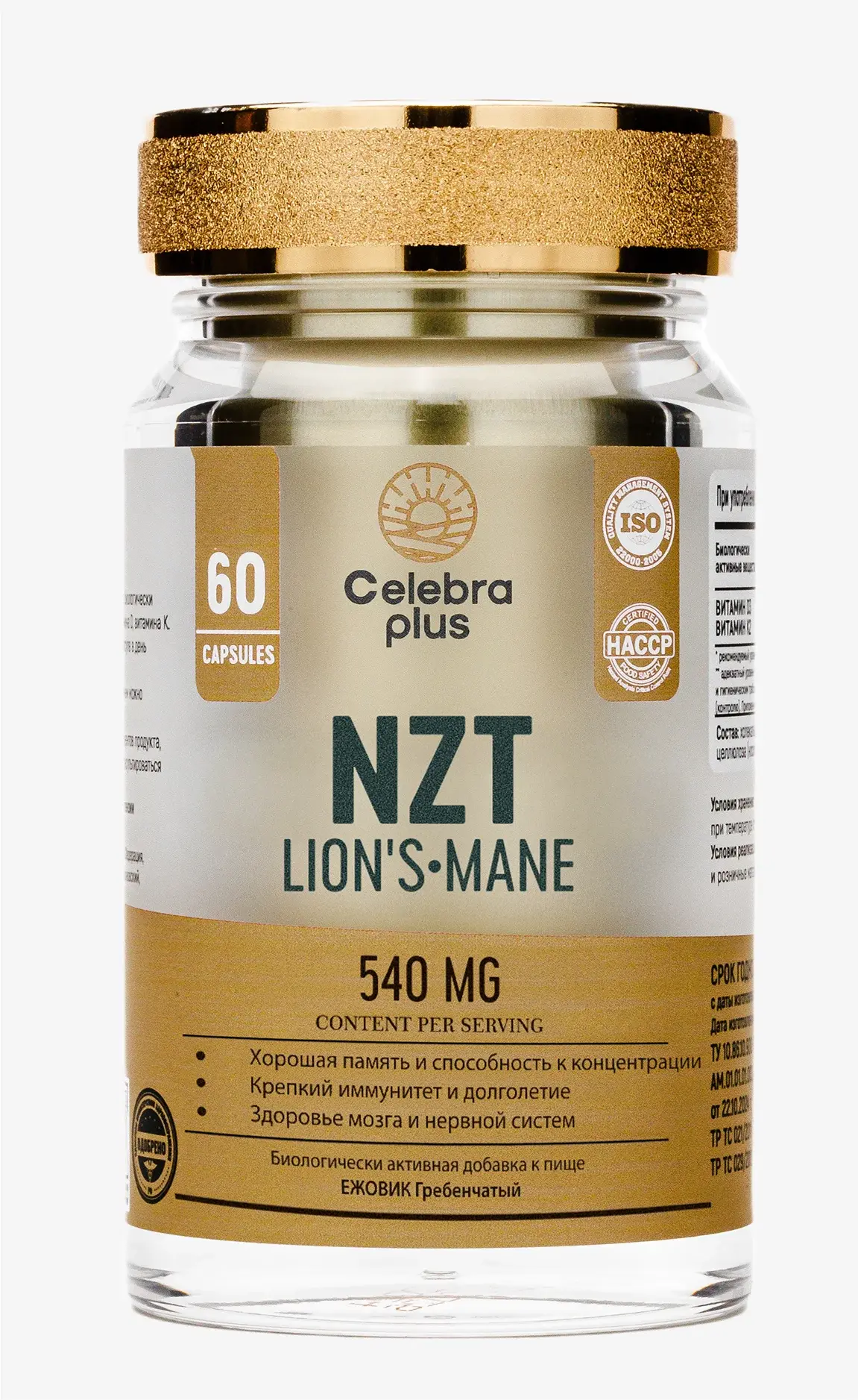 Ежовик гребенчатый: Стимулирует выработку NGF (нейротрофического фактора роста), способствуя восстановлению и росту нервных клеток. Улучшает память, внимание и снижает тревожность.